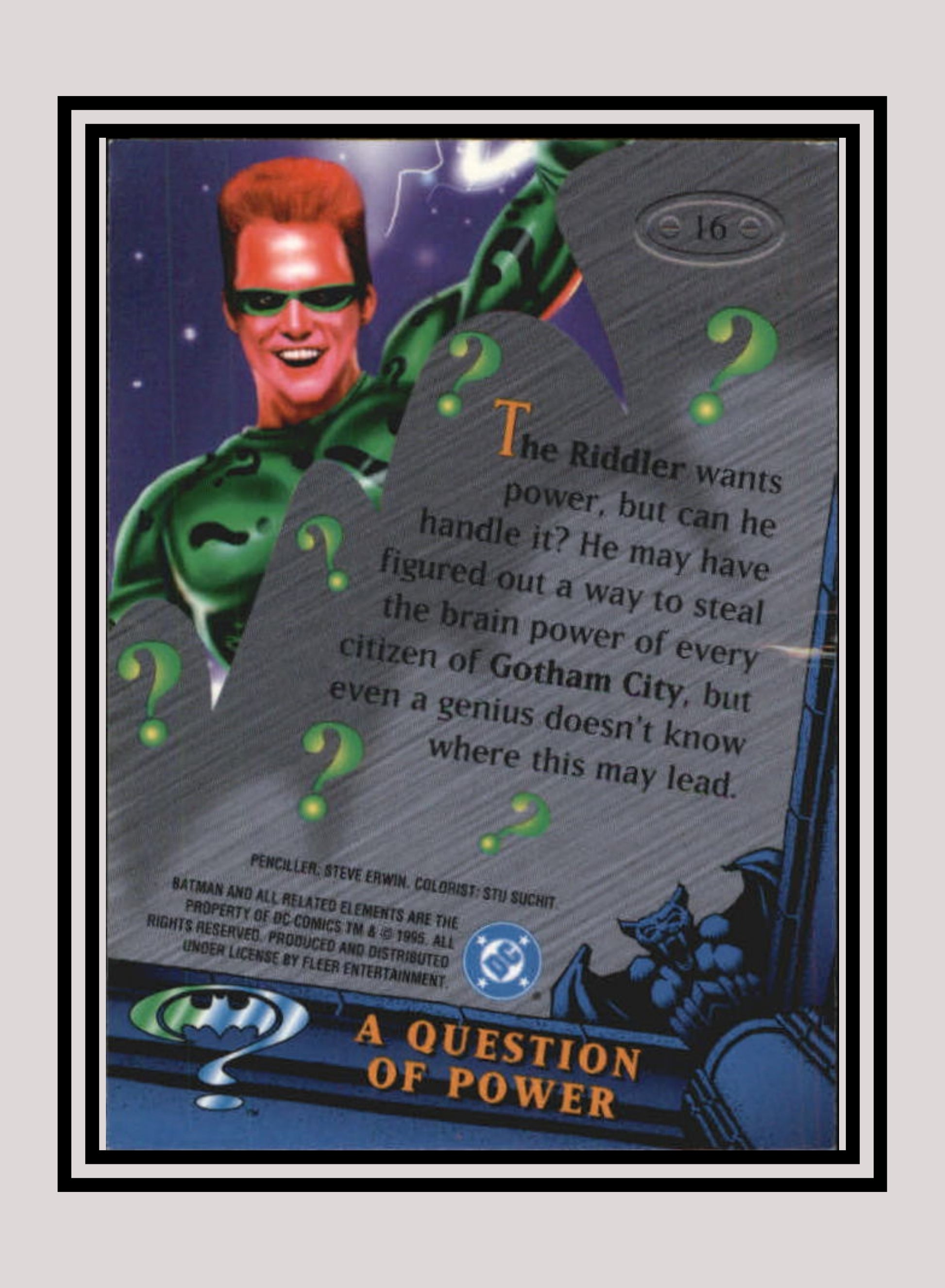 DC! 1x A Question of Power - Base Metal (#016 - 1995 Fleer Batman Forever Metal)