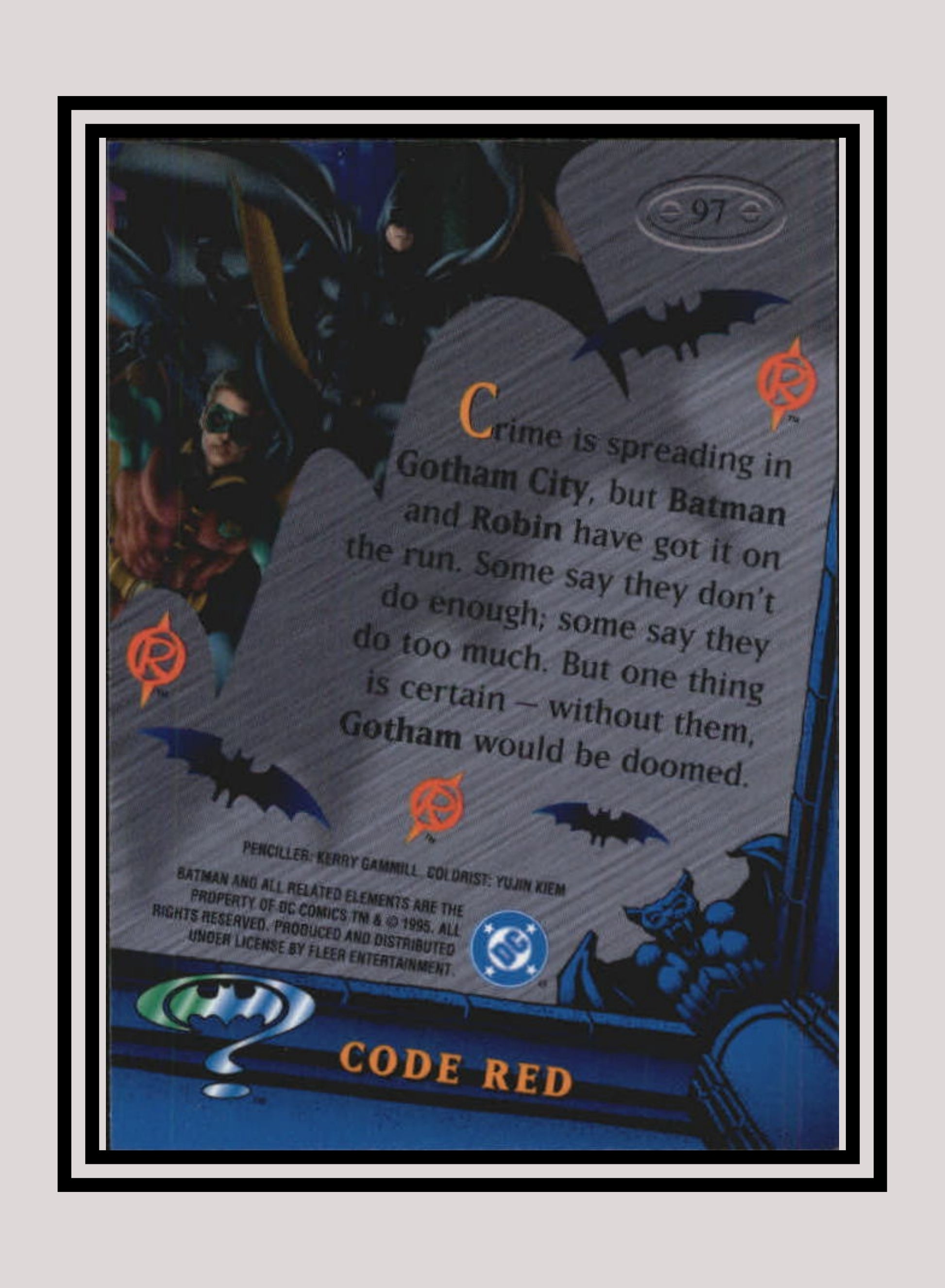 DC! 1x Code Red - Base Metal (#097 - 1995 Fleer Batman Forever Metal)