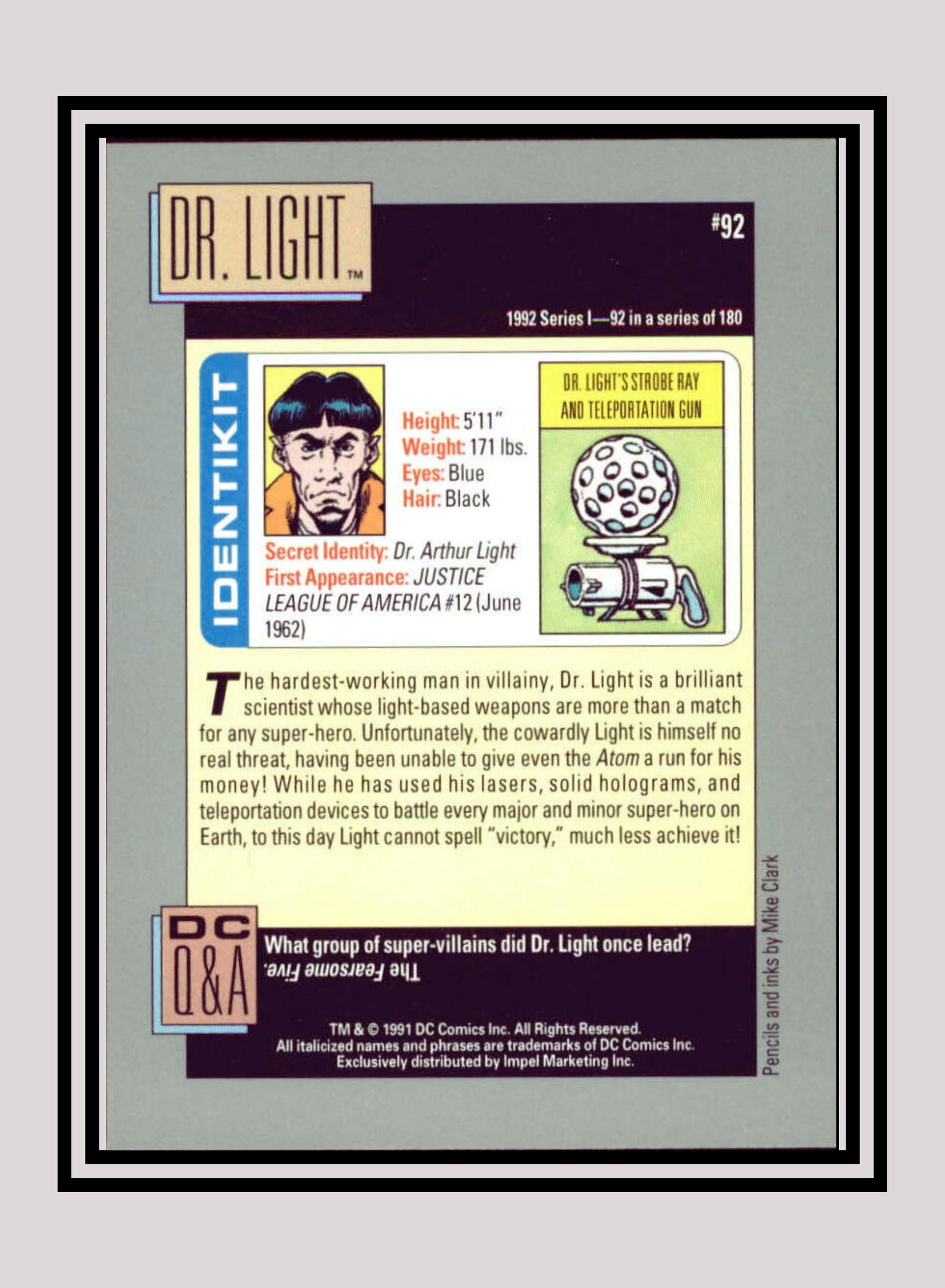 DC! 1x Dr. Light - Base (#092 - 1991 Impel DC Cosmic Cards)