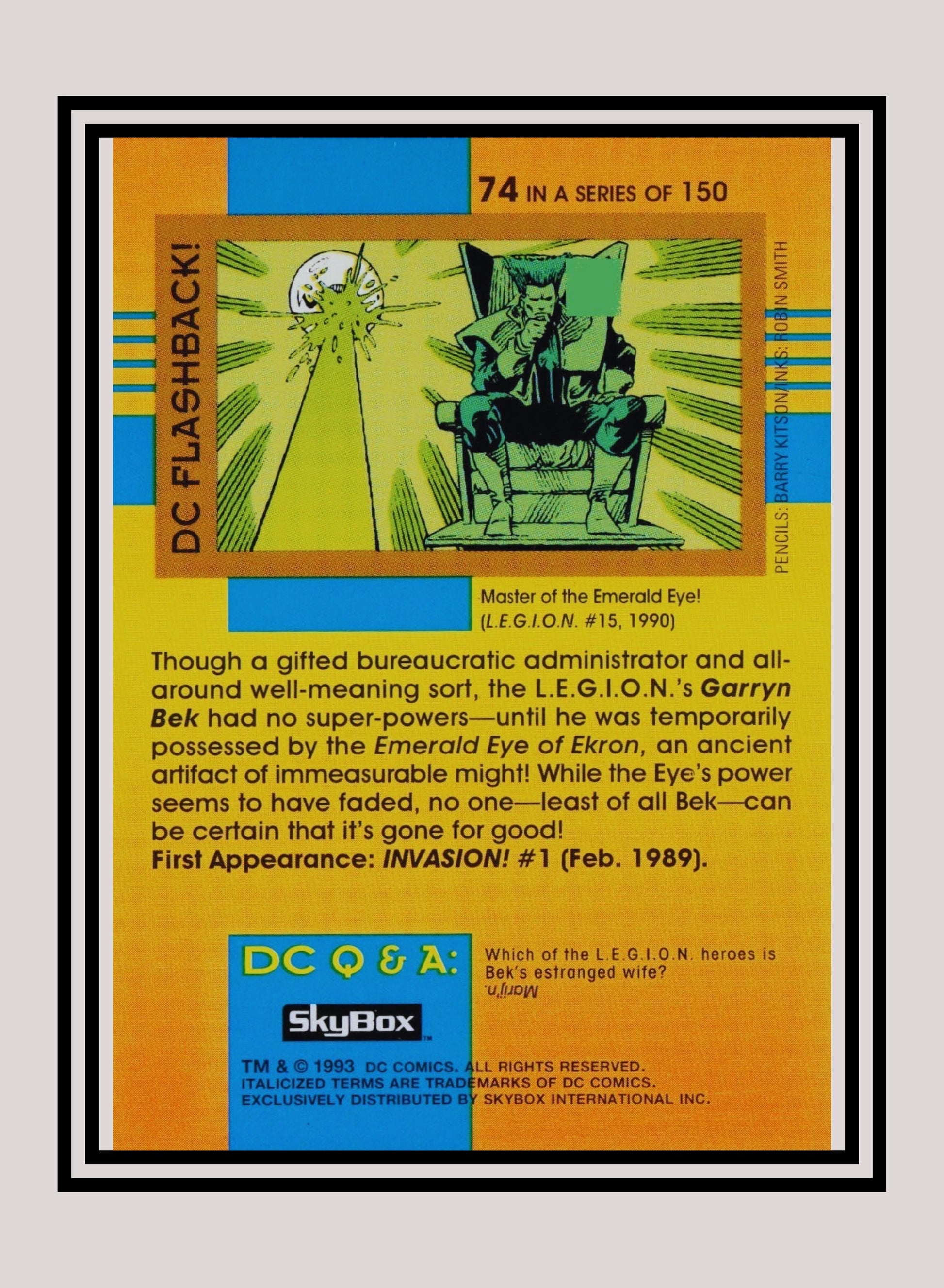 DC! 1x Garryn Bek - Base (#074 - 1993 Skybox DC Cosmic Teams)