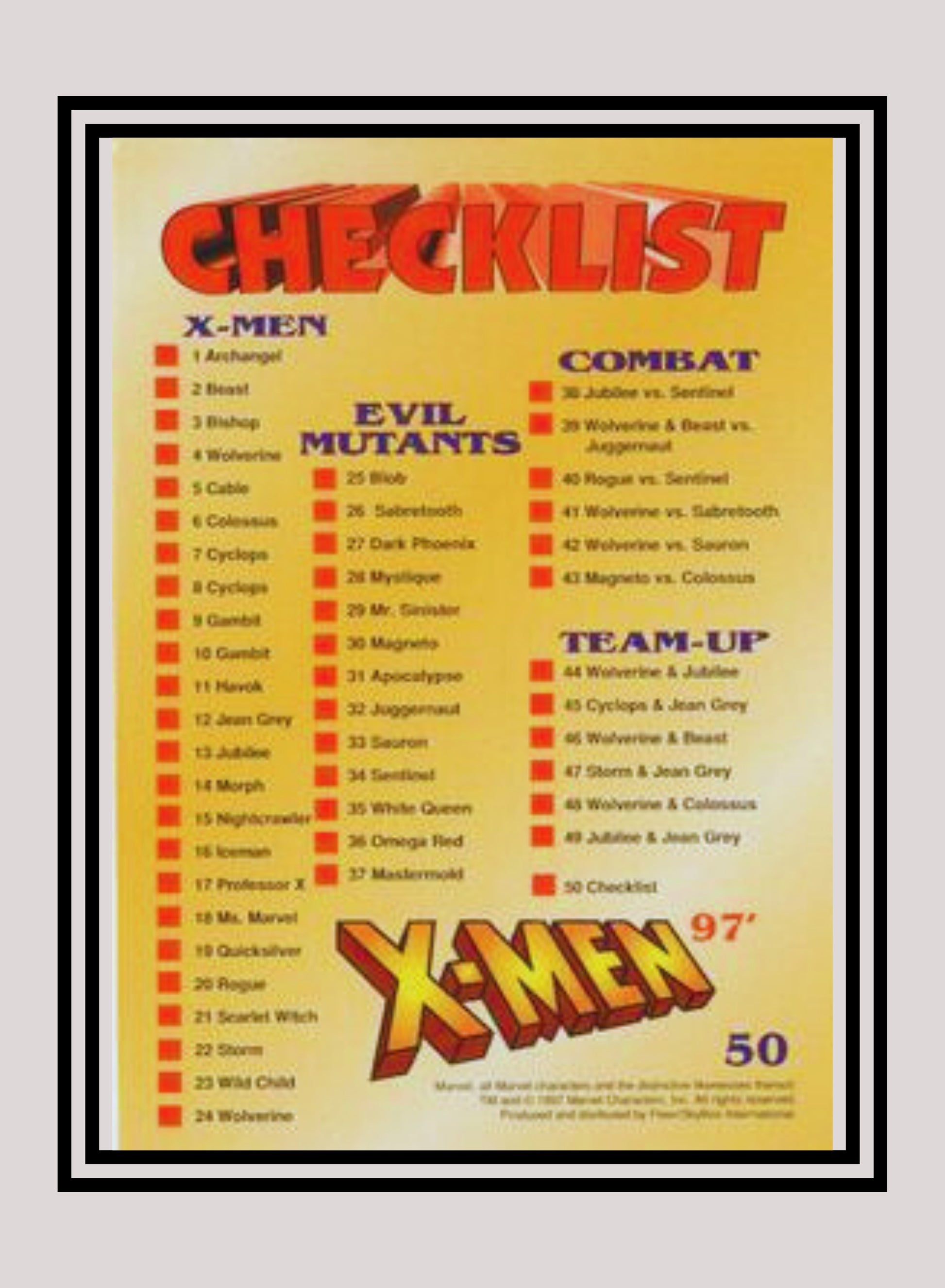 Marvel! 1x Checklist - Base (#50 - 1997 Fleer X-Men International)